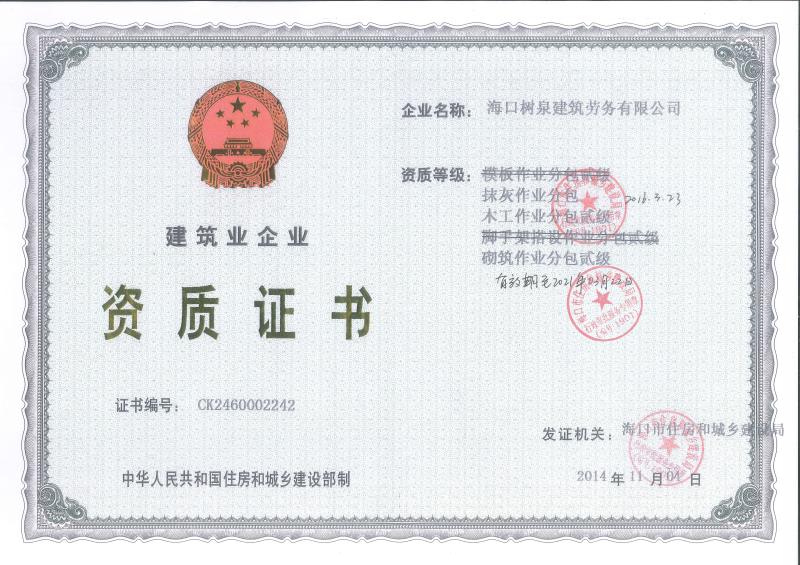 ??跇淙ㄖ趧沼邢薰境闪⒂?011年,公司位于??冢淝吧硎且患覍I建筑施工隊,自2004年即開始在海南從事建筑勞務施工。自成立至今,公司已經擁有一支科學管理、質量過硬、能打硬仗,搶工期的專業隊伍。能獨立承擔大中型工業與民用建筑 、室內外裝修、各類機電設備安裝工程。代表工程有海口濱海華庭、三亞時代海岸T01/02/04/05棟高層、合肥東?;▓@二期、陵水富力灣B區高層、三亞金中海(酒店)、瓊海大印經典花園、??诃h球海景大酒店(四星級酒店,在建中)、陵水珍珠大廈(五星酒店)、??谌f達廣場、美蘭機場二期。